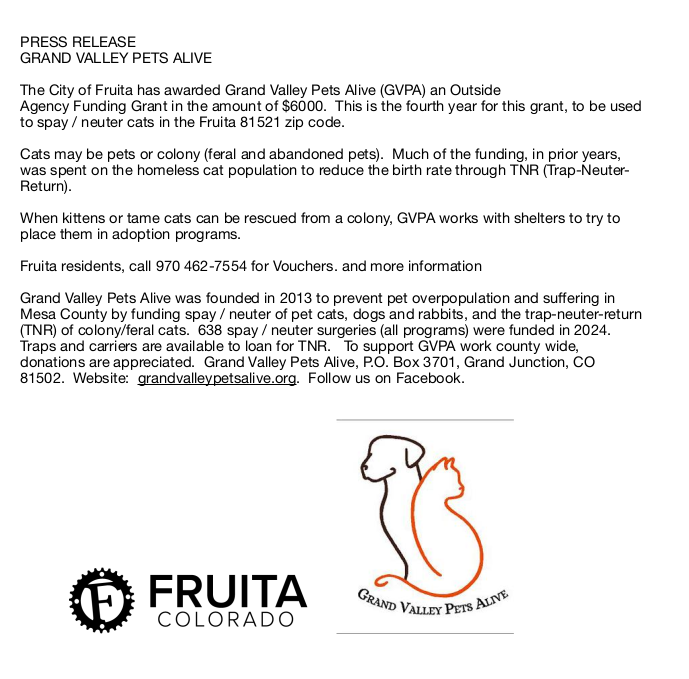 We are clearing our waiting list and sending vouchers! www.coloradogives.org/GrandValleyPetsAlive